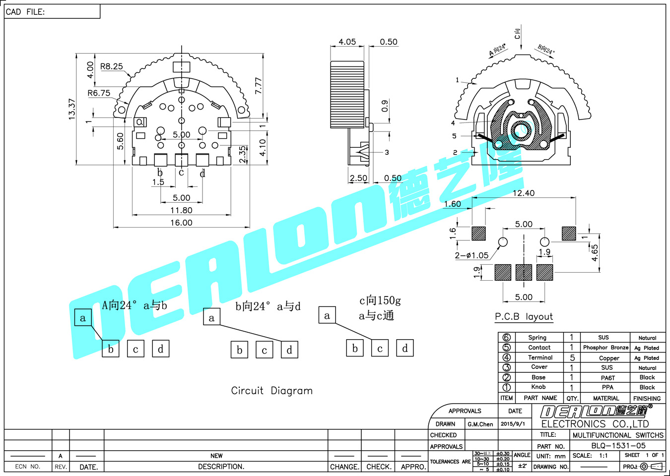 4-direction-20°-0°+20° Center push0.7mm±0.1mm