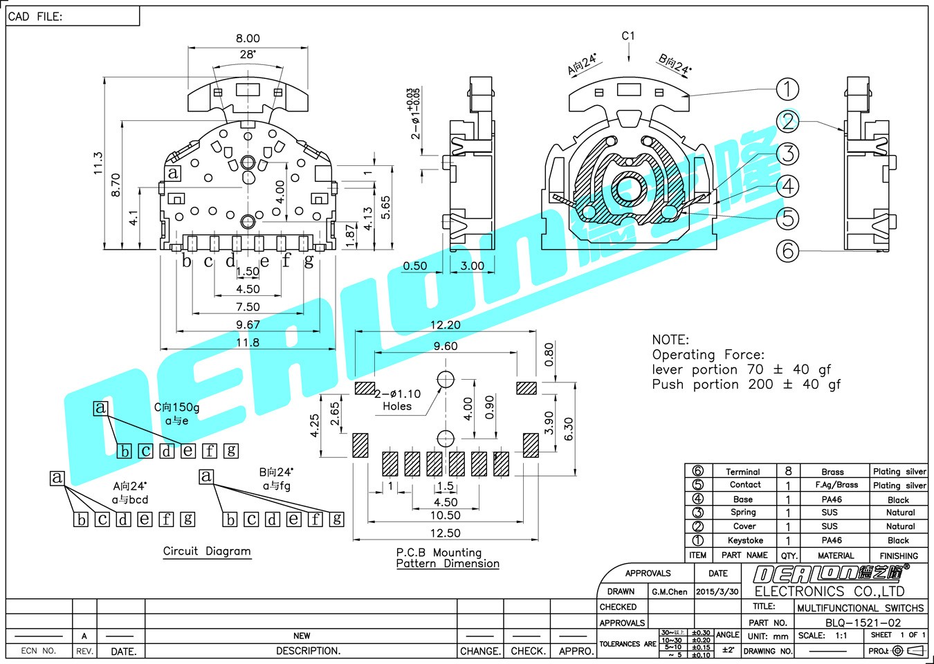 4-direction-20°-0°+20° Center push0.7mm±0.1mm