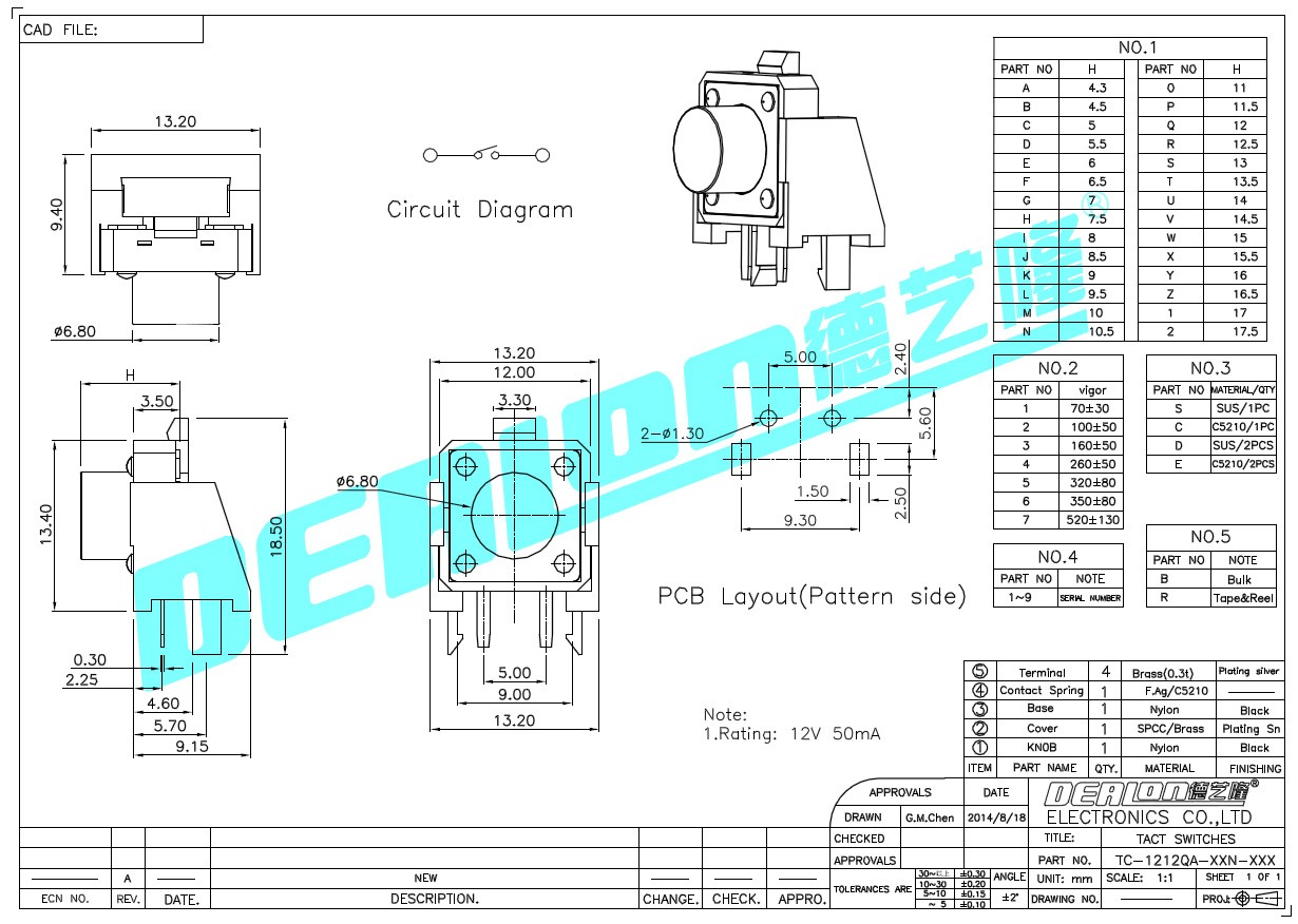 輕觸開(kāi)關(guān) TC-1212QA